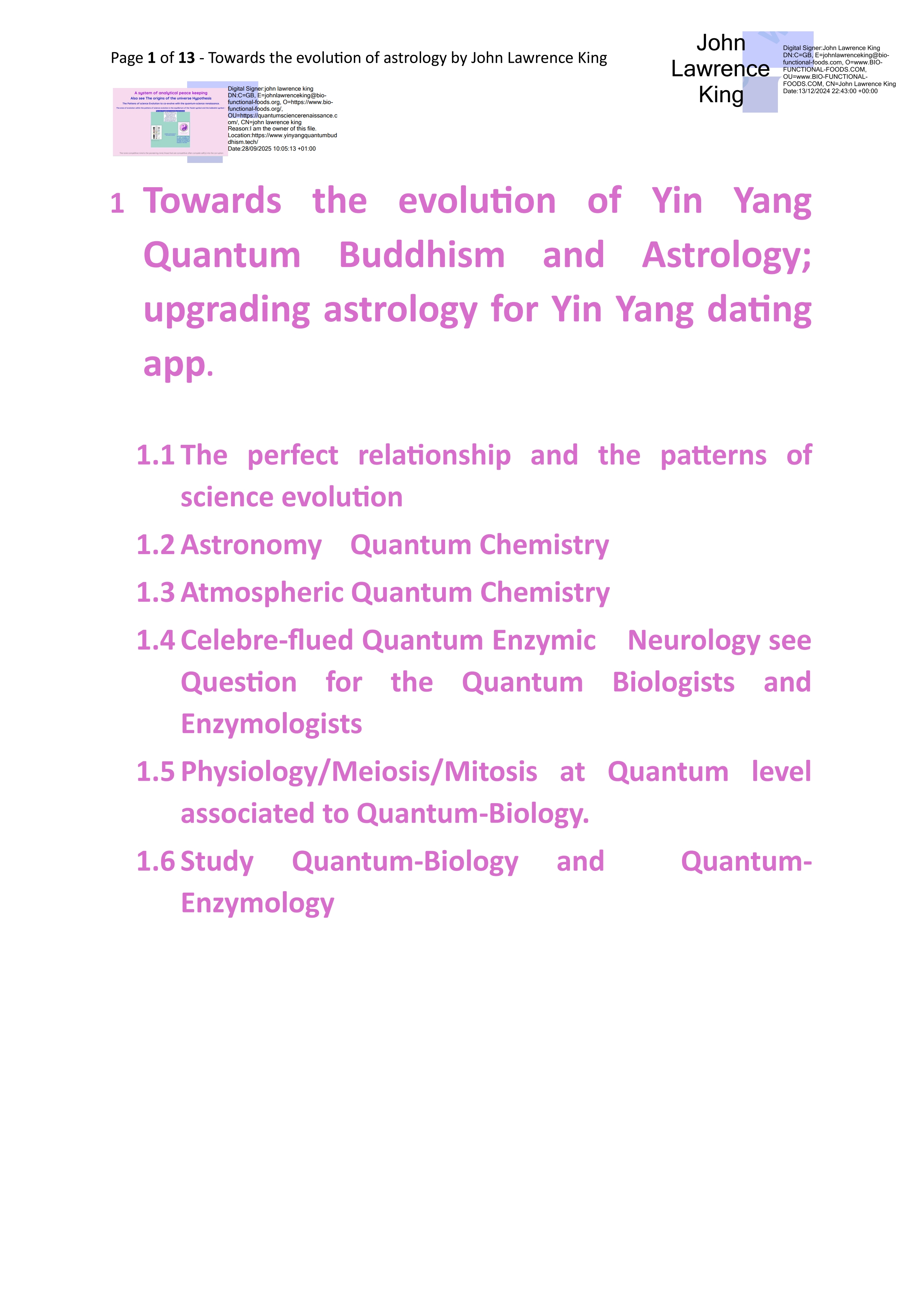 The perfect relationship and the patterns of science evolution; It would be nice if I found a calm/quiet compatible female-Yin of which, perhaps a classical personality type if you’re interested write… to me (or email: johnlawrenceking@bio-functional-foods.com) with your photograph.