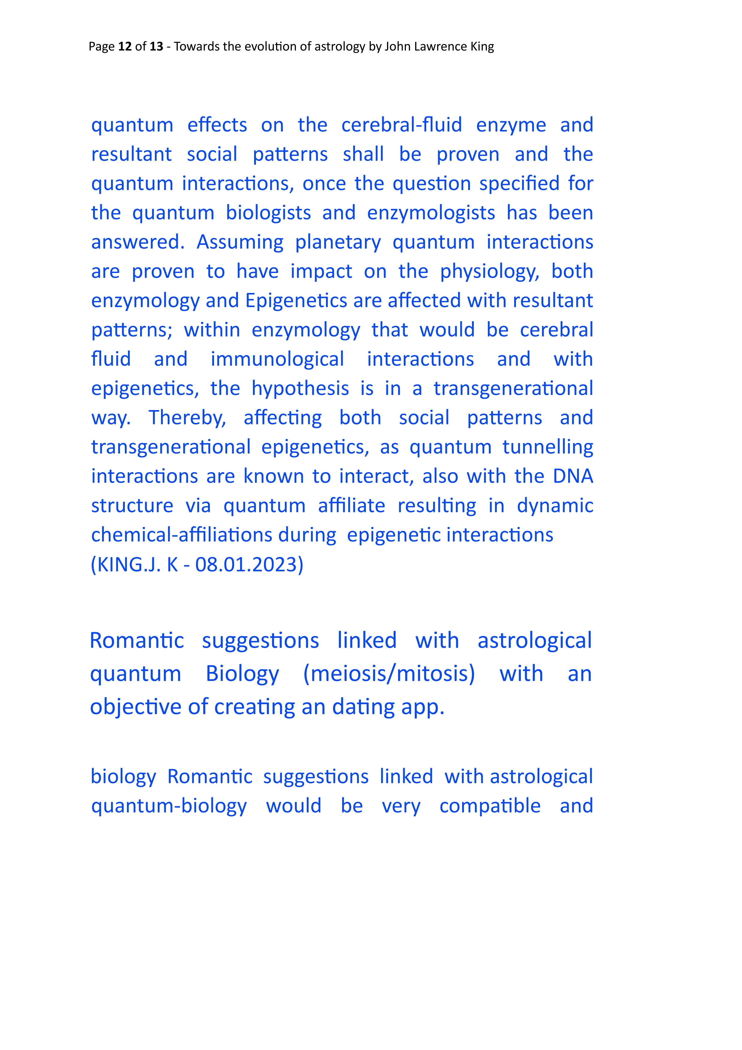 “Quantum level Epigenetics and Quantum-Epigenetic-Drift will be the next step in the evolution of epigenetics” John Lawrence King